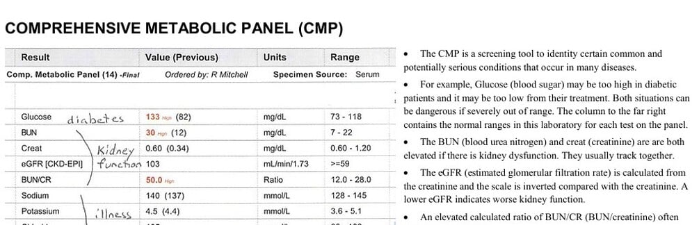 This is a one-page PDF on interpreting a comprehensive metabolic panel report.